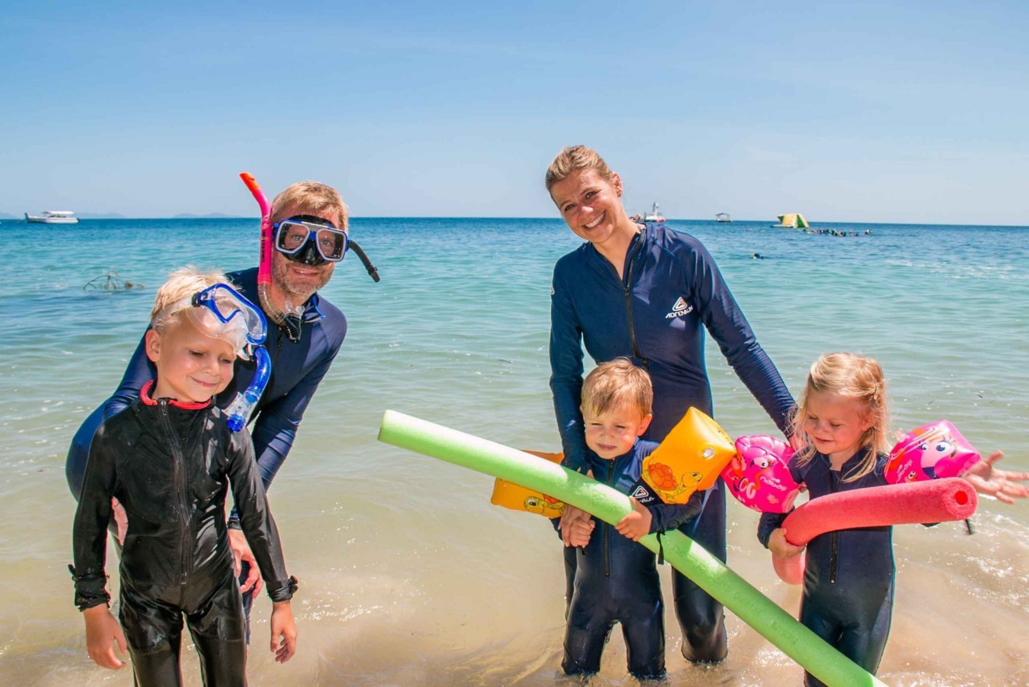 30-minute calm water cruise along the Mulgrave River Morning and afternoon tea Fresh water throughout the day Fresh tropical lunch provided (special dietary requirements to be advised when booking) Up to 4 hours on Frankland Islands Snorkel Stars kids snorkeling tutorial and certificate Snorkeling equipment and tuition Unlimited beach snorkeling Guided snorkel safari Reef semi-sub expedition Guided Island and foreshore walk Kids treasure hunt Use of kayaks and paddle boards
