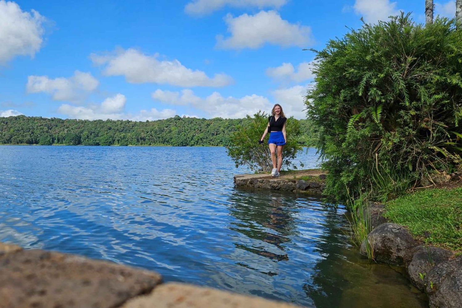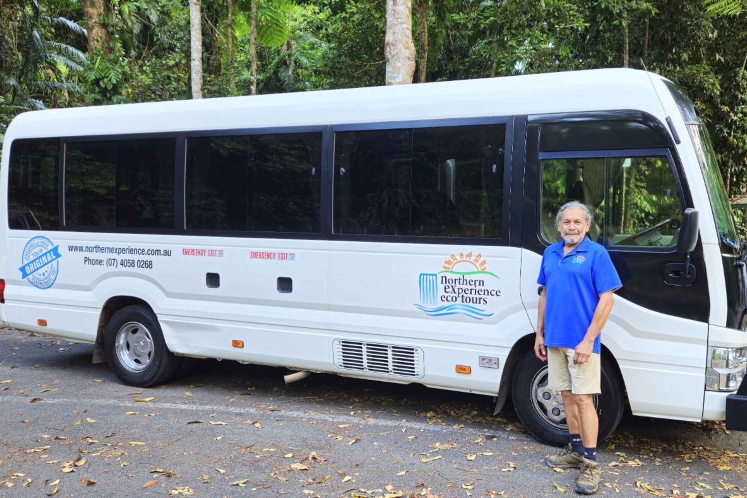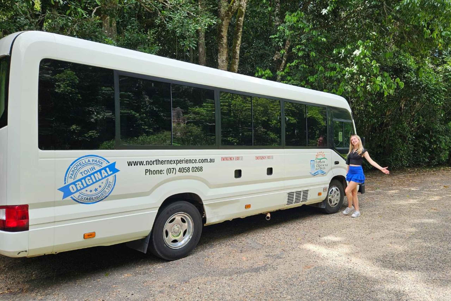 Begin your day early by boarding a comfortable coach on this premium small group tour. Journey through the lush landscapes of Goldsborough Valley before ascending to the cool tropical rainforests of the Atherton Tablelands. Travel alongside towering rainforest trees lining the winding path. Stop at Heales Lookout for breathtaking views over the valley and the Coral Sea. Continue to Lake Barrine in Crater Lakes National Park, part of the Wet Tropics World Heritage Area. Discover the region’s ancient natural history on a guided walk to the 1,000-year-old twin kauri pines, true giants of the rainforest. Enjoy a classic Devonshire Tea with locally-grown tea or coffee, scones, jam, and freshly whipped cream, all overlooking the serene Lake Barrine. Next, visit the historic town of Yungaburra for photo opportunities before heading to the Curtain Fig Tree, towering more than 45 meters above the rare Mabi forest. Learn the fascinating story of this 600–800-year-old epiphyte while spotting local wildlife, including green ring-tailed possums, eastern whip birds, Victoria’s riflebirds, and the rare Lumholtz’s tree-kangaroo. Drive through the charming dairy town of Malanda and arrive at the iconic Millaa Millaa Falls, one of Australia’s most-photographed waterfalls. Refresh in the crystal-clear waters cascading 20 meters over ancient volcanic lava formations. Refuel with a delicious a la carte lunch before descending the Atherton Tablelands via Palmerston Highway, passing through the traditional lands of the Mamu people and scenic sugarcane and banana fields. Explore the National Trust-listed Paronella Park on a 30-minute guided tour, discovering its Spanish-inspired architecture set amidst lush tropical gardens. Capture stunning photos at Kauri Avenue, Teresa Falls, the Grand Staircase, and the suspension bridge over Mena Creek Falls. Time permitting, enjoy a final dip at Babinda Boulders, where tranquil waters flow between striking granite formations. Return to Cairns in the evening with unforgettable memories of the breathtaking Atherton Tablelands and Paronella Park, all experienced on this exclusive premium small group tour.Includes
